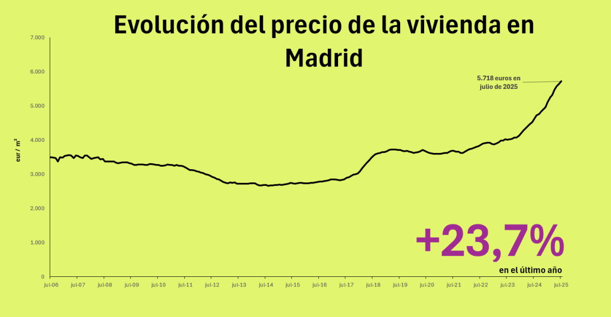 El mercado inmobiliario de Madrid sigue mostrando una fuerte tendencia alcista en 2025, con precios que alcanzan niveles históricos.